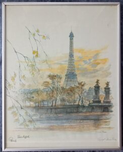 F.eks.”Paris, Eiffeltårnet” i ramme. Hertil har vi rigtig mange andre andre plakater. (Se her)
