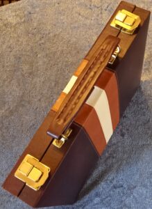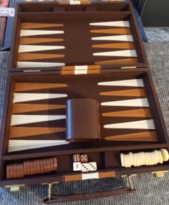 Backgammonspil Backgammon i brun kuffert – aldrig brugt – Mindre brun backgammon (19×28 cm) eller i sort mappe Se desuden vores skakspil! En del indeholder også backgammon!