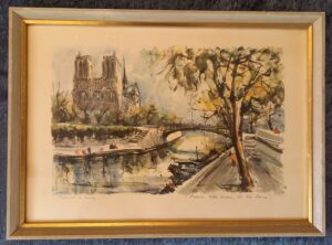 “Paris, Notre Dame at La Seine” i 30×40 cm ramme.