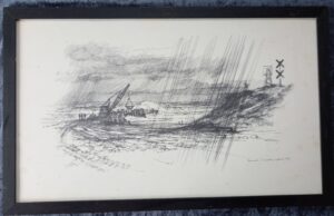 “Kommandørgård fra Rømø” Tegnet for Dansk ESSO A/S i 30×40 cm ramme.
