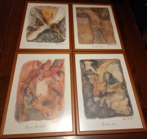 “Skabelsen”, Marias bebudelse”, “Noahs Ark” og “Korsfæstelsen” i 30×40 cm rammer