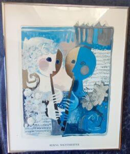 “Violinist og fløjte spiller” i 62x 93 cm ramme.