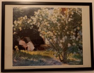“Haveparti med Marie Krøyer og roser” i 30×40 cm ramme