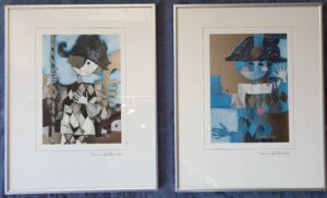 “Pjerrot med hjerte” og “Pjerrot med stang” i 24×30 cm rammer