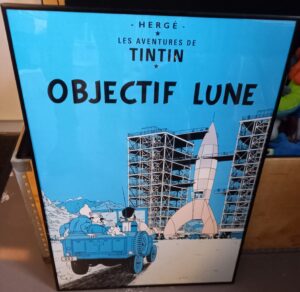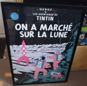 “On a marche sur la Lune” i 70×50 cm sort ramme.